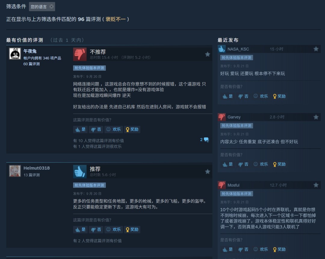 Steam上其中一个最热门评论写道:“一开始的印象非常好,游戏优化一流……你会跟着飞船在太空中跳跃。10/10.会再跳一次。”
